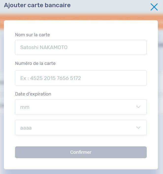Après avoir cliqué sur « Ajouter une autre carte bancaire », la fenêtre suivante vous permet de rentrer votre nom, votre numéro de carte, ainsi que sa date d’expiration.