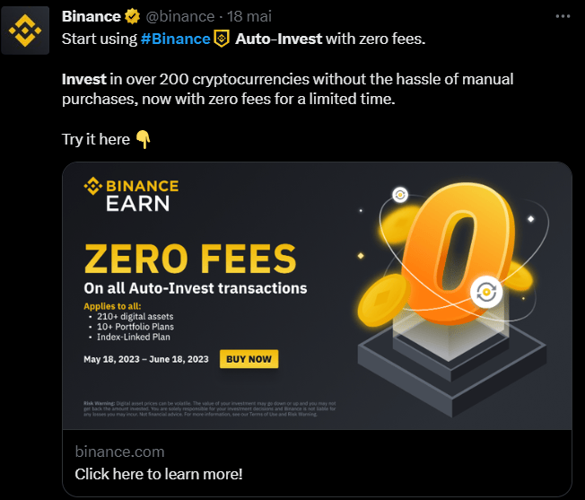 Un DCA à la carte chez Binance avec zéro frais pendant quelques semaines