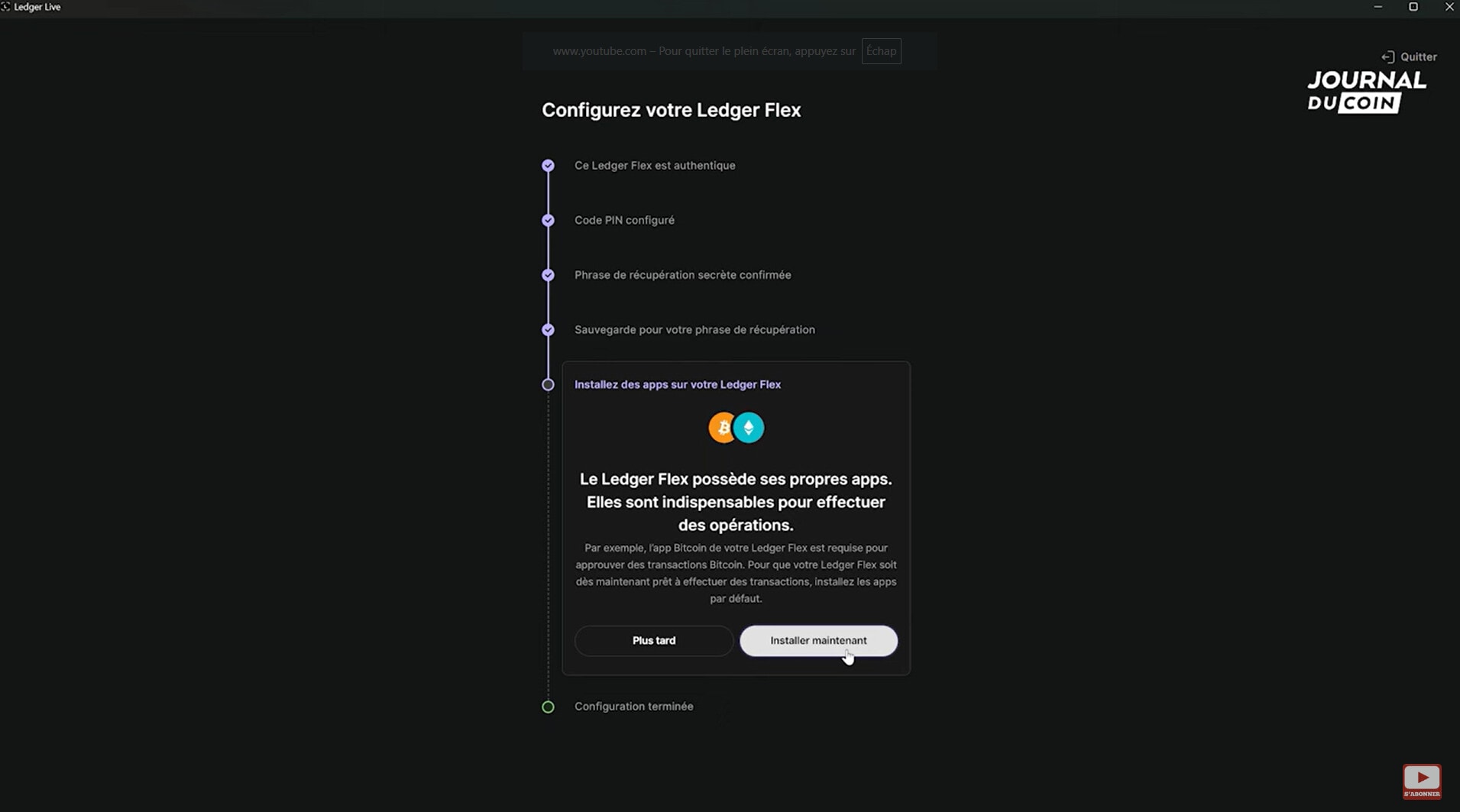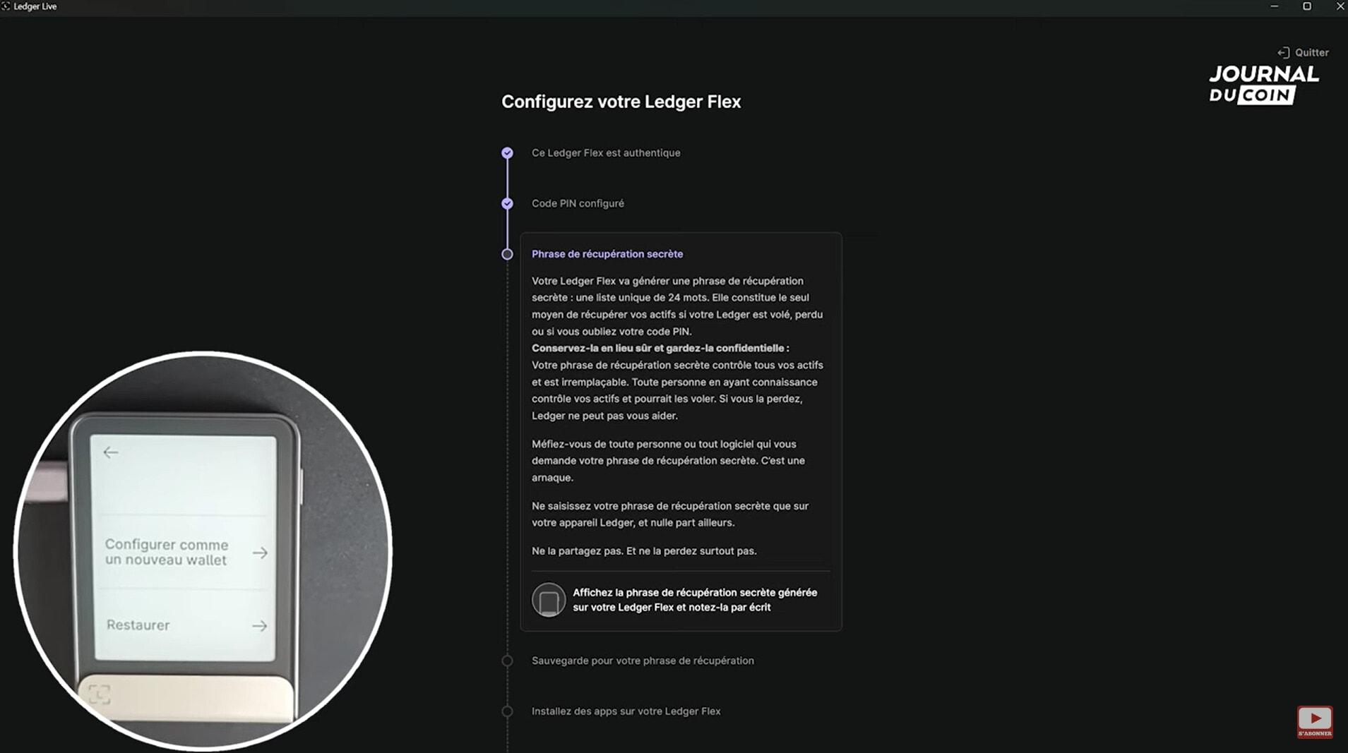 Pour aller plus loin dans la découverte du Ledger Flex, nous vous proposons de visionner cette vidéo tournée par notre journal. Vous y trouverez entre autre une revue de tous les paramètres de l’appareil ainsi que la démarche à suivre pour l’utiliser sur smartphone et via la connexion NFC.