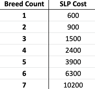 Coût total en Smooth Love Potion selon le niveau de breed