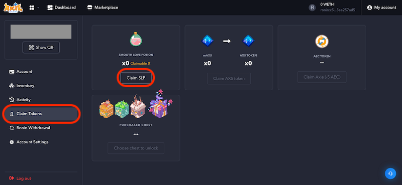 Comment réclamer vos tokens SLP sur le dashboard de la marketplace