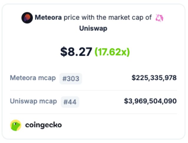 Uniswap possède un TVL supérieur, certes, mais aussi un modèle similaire de capture de liquidité et de frais. Son token, malgré une utilité principalement gouvernance, a atteint une capitalisation plusieurs fois supérieure à celle de Meteora.