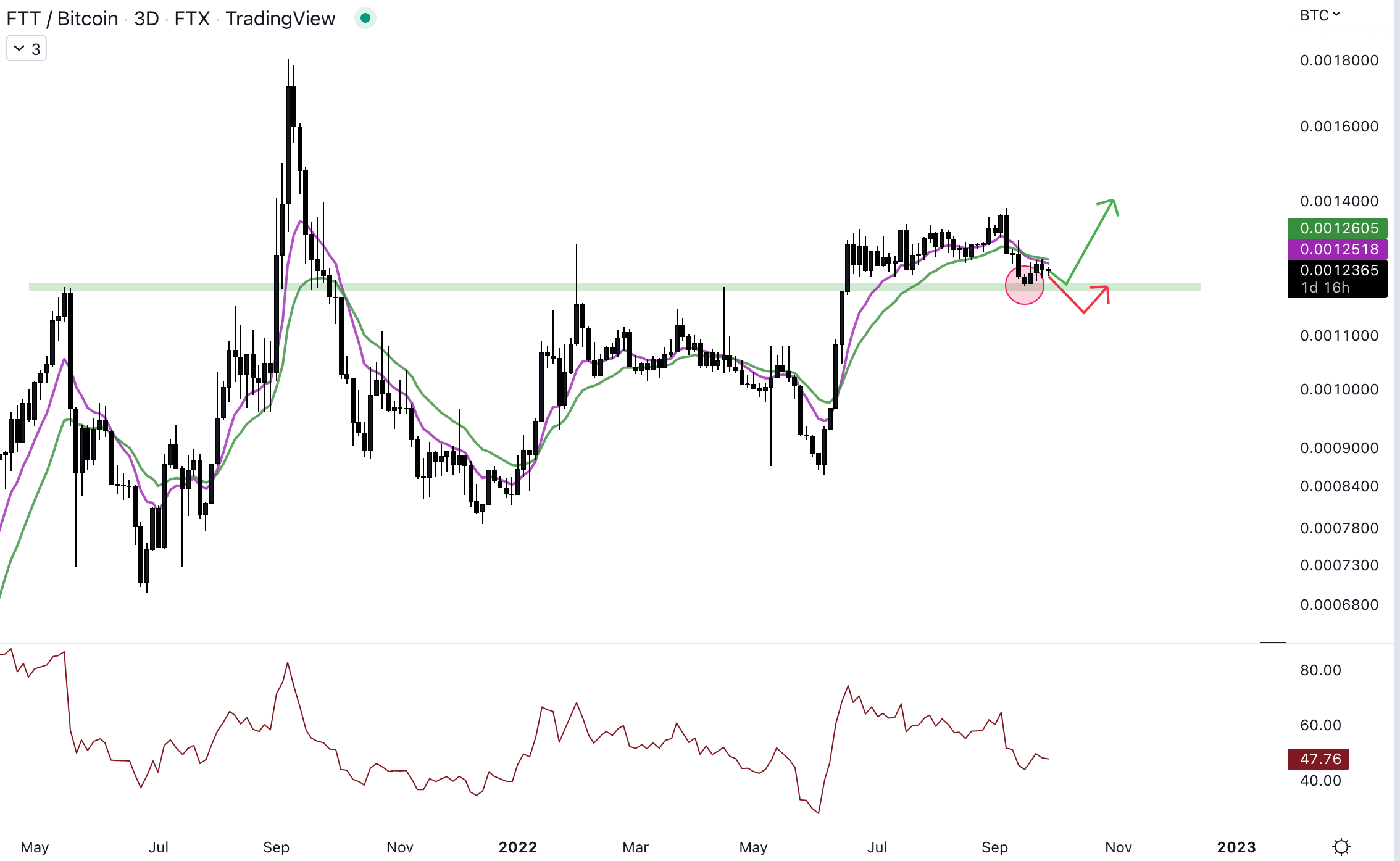 Contre le Bitcoin, le FTX Token a bien réagi au niveau du support :