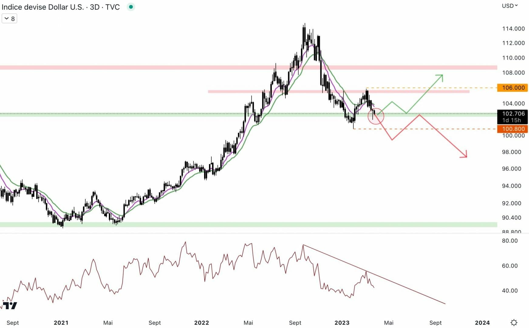 Le dollar est de retour au niveau du support à 102,5 points