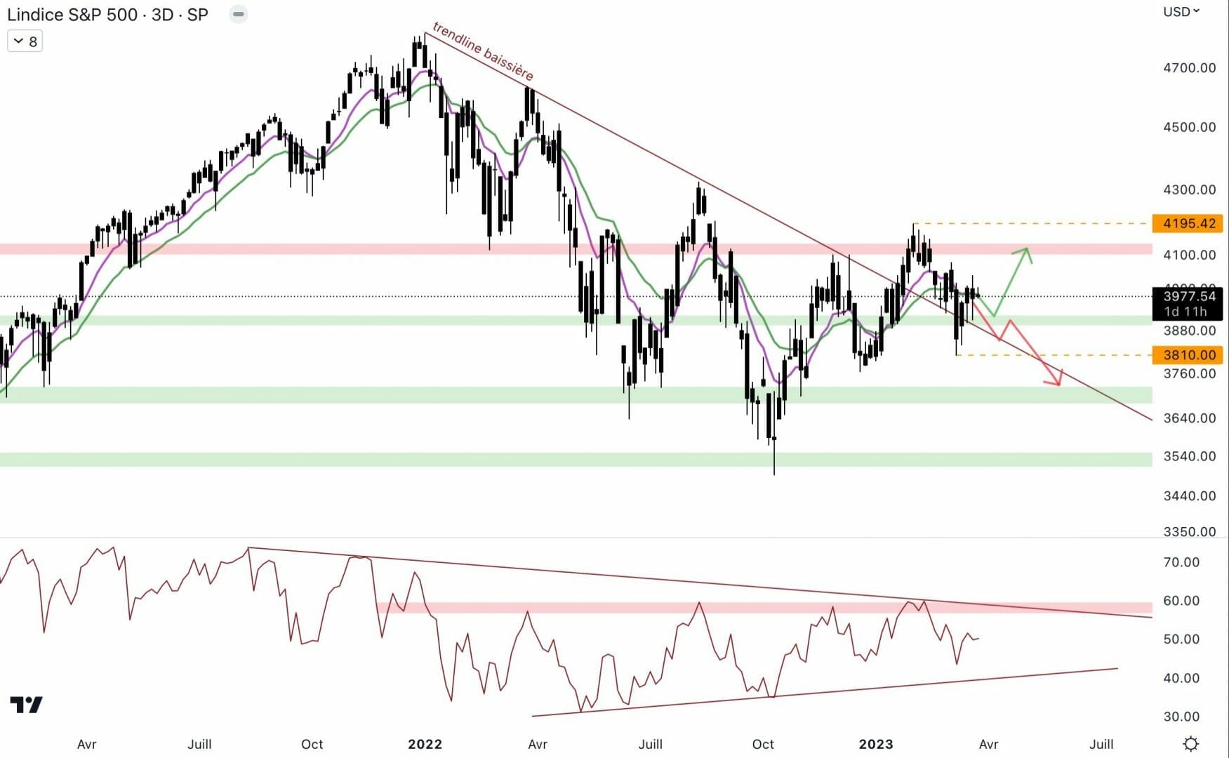Malgré la crise bancaire et les mouvements connus après la réunion de la FED concernant la hausse des taux, le S&P 500 se maintient au-dessus du support à 3 900 $ :
