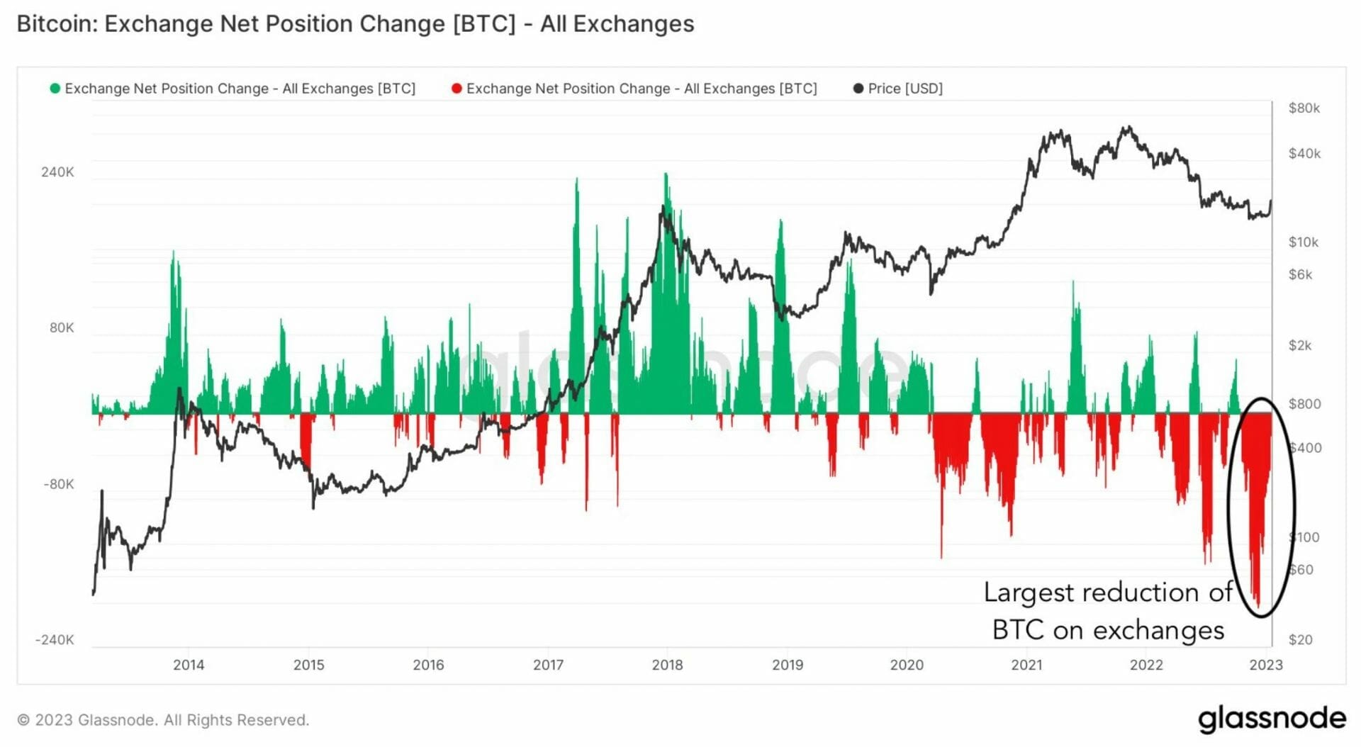 Le Bitcoin continue de quitter les exchange, avec des montants supérieurs aux précédents marchés baissiers. Les acteurs semblent optimistes pour le futur des cryptomonnaies et décident de sortir leurs Bitcoin des exchange.