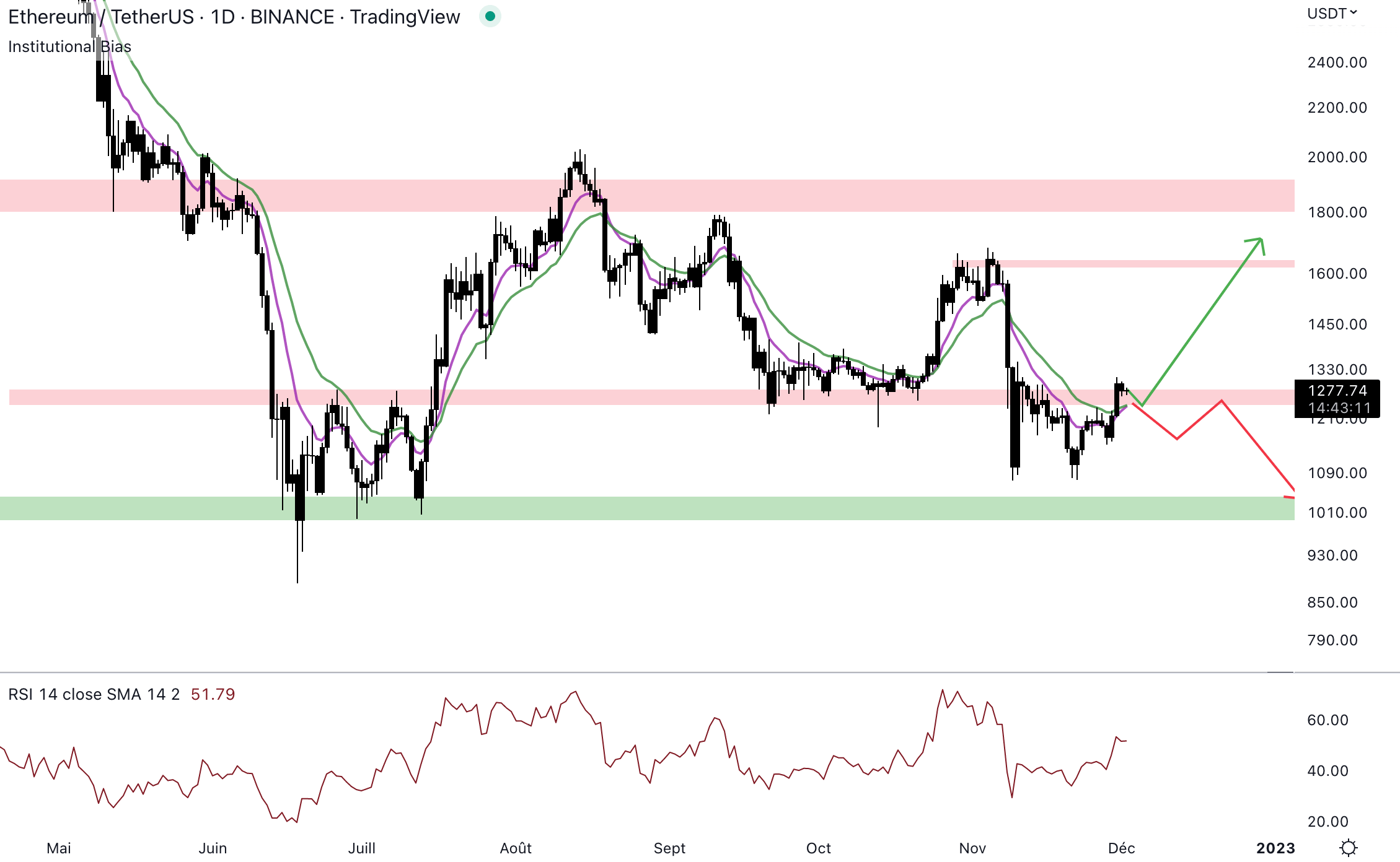 En journalier, Ethereum tente de s’affranchir de 1 250 $