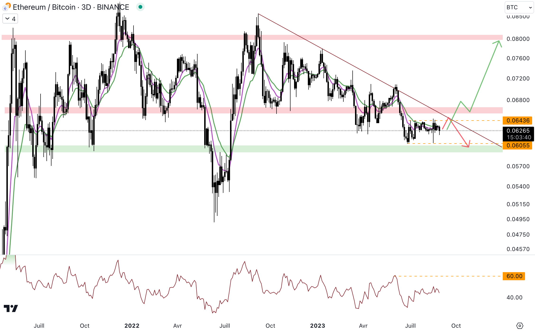 Le cours d'Ethereum face au Bitcoin est toujours dans l'indécision - 31 août 2023