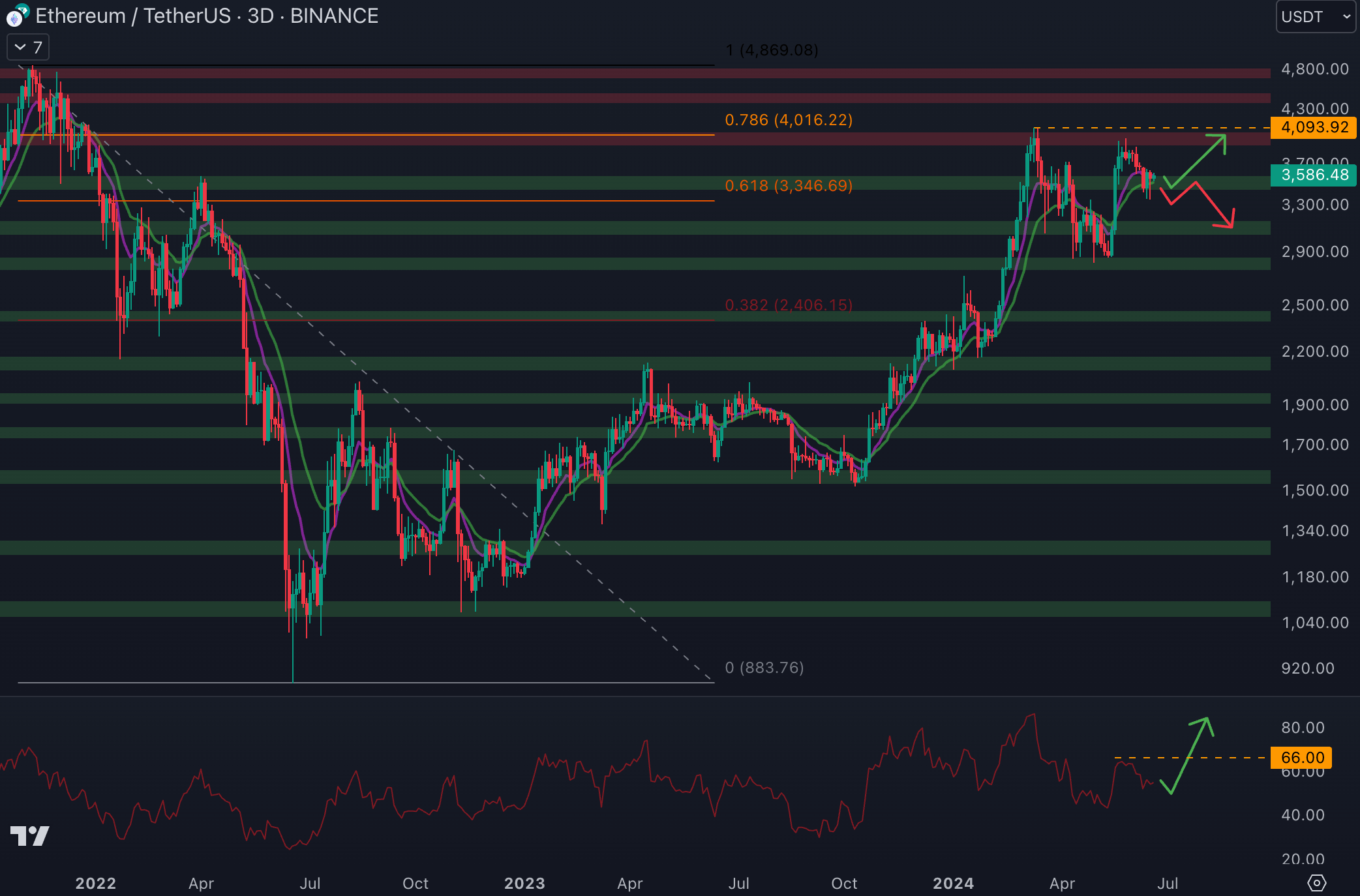 D’après les différents graphiques analysés, on peut estimer que les capitaux continuent de se diriger vers le roi des cryptomonnaies. Pour le moment, les investisseurs font confiance au plus solide actif du secteur. Et pourtant, certains signes montrent qu’Ethereum pourrait lui voler la vedette d’ici quelques semaines, ou bien quelques mois. En effet, alors que le BTC a chuté au niveau des 64 000 $, Ethereum, lui, a réussi à se maintenir au-delà des 3 500 $. Si les acheteurs poussent, un retour à 4 000 $ est possible. Face au Bitcoin, Ethereum résiste, mais il faudra confirmer en cassant définitivement la trendline baissière et en retrouvant des creux et des sommets ascendants clairs sur la paire ETH/BTC. Et si Ethereum décide d’accélérer en vue du lancement des ETF au comptant, les altcoins pourraient en profiter pour retrouver des couleurs.
