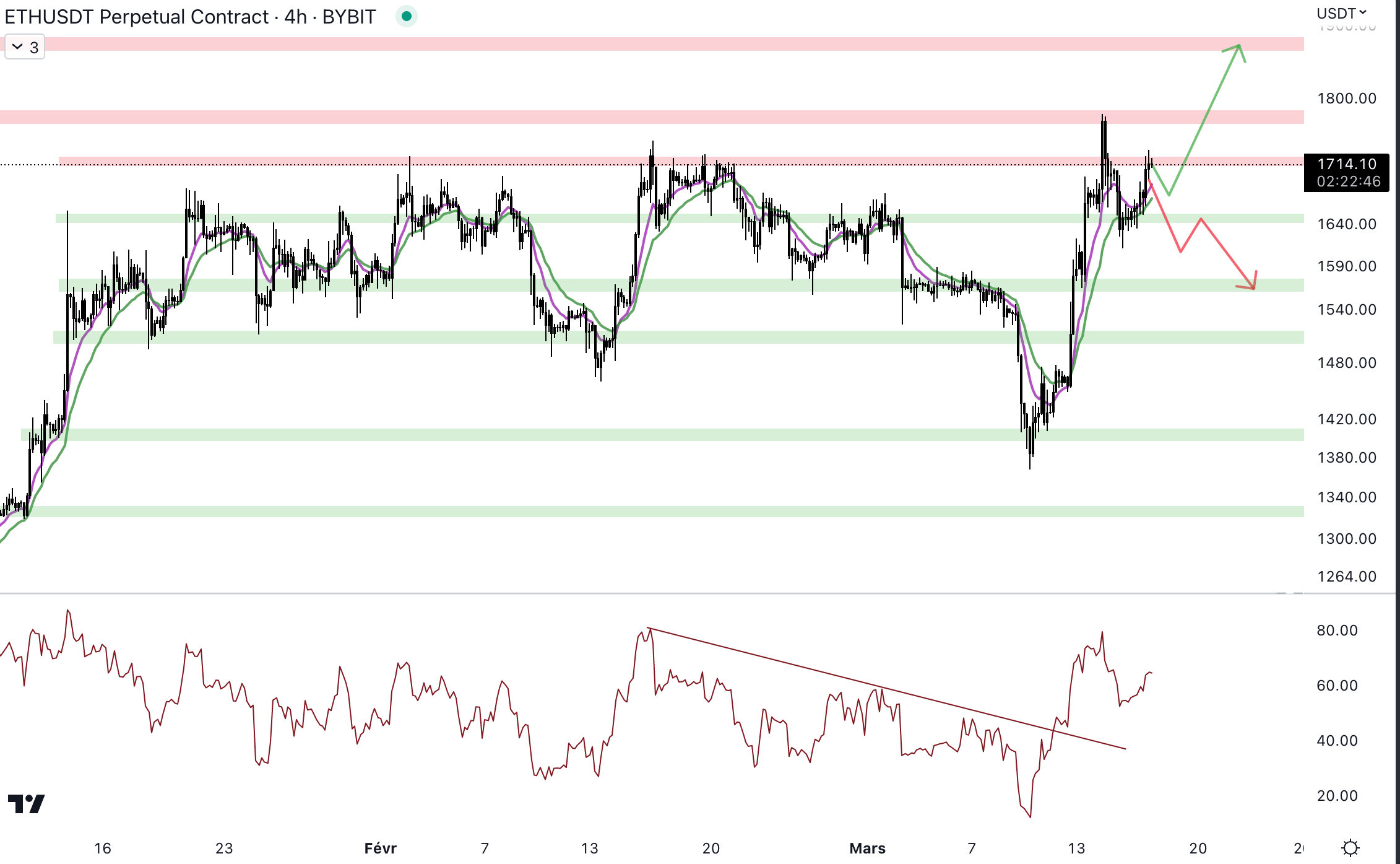 À court terme, Ethereum bloque au niveau de la résistance à 1 720 $