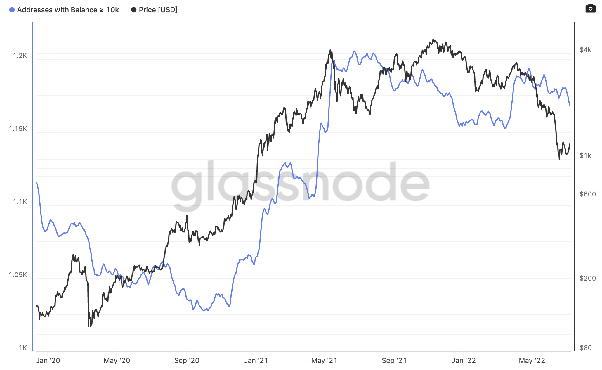 Nombre d’adresses ayant plus de 10 000 ETH en portefeuille Source : Glassnode