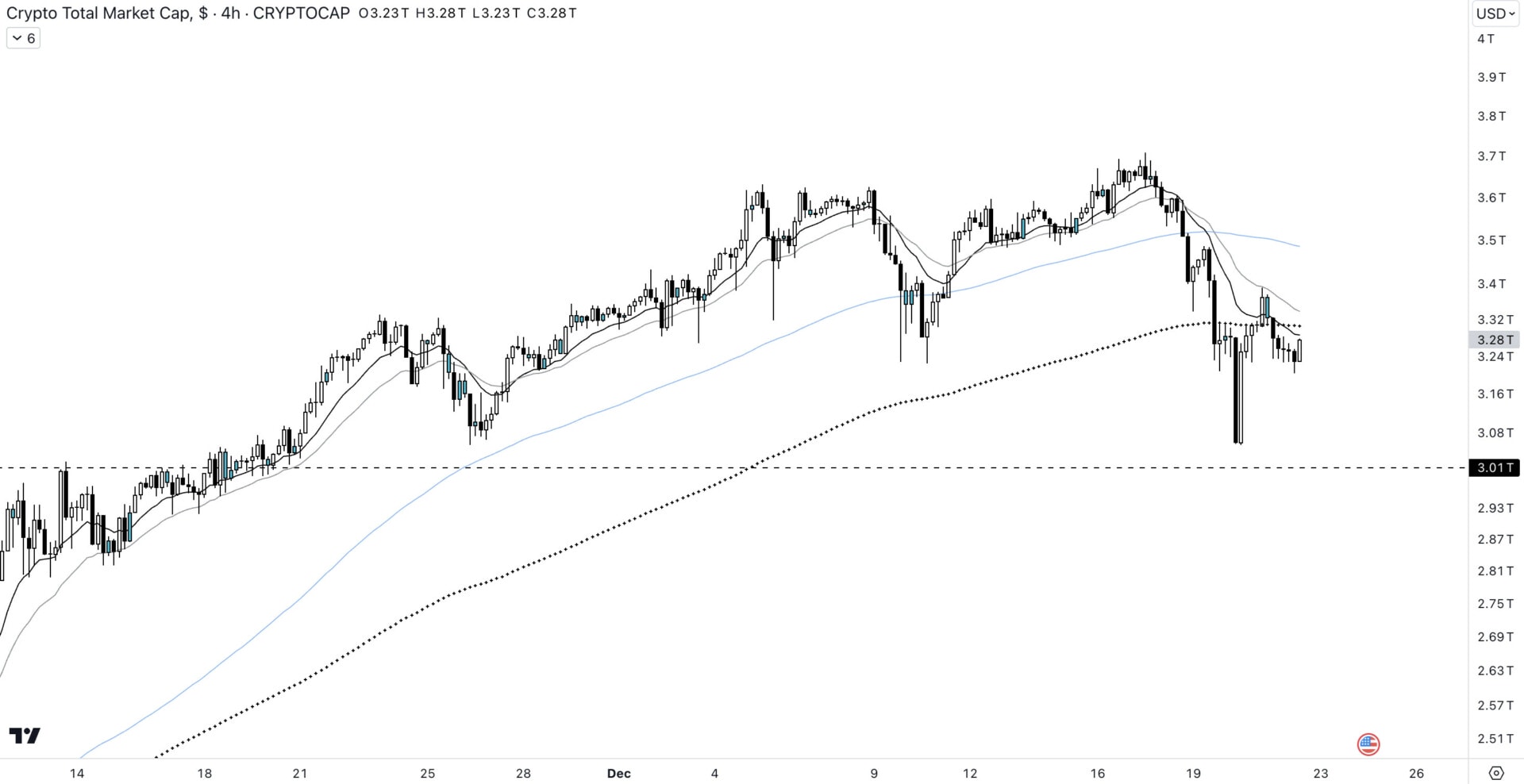 La capitalisation du marché crypto se retrouve dans une position délicate