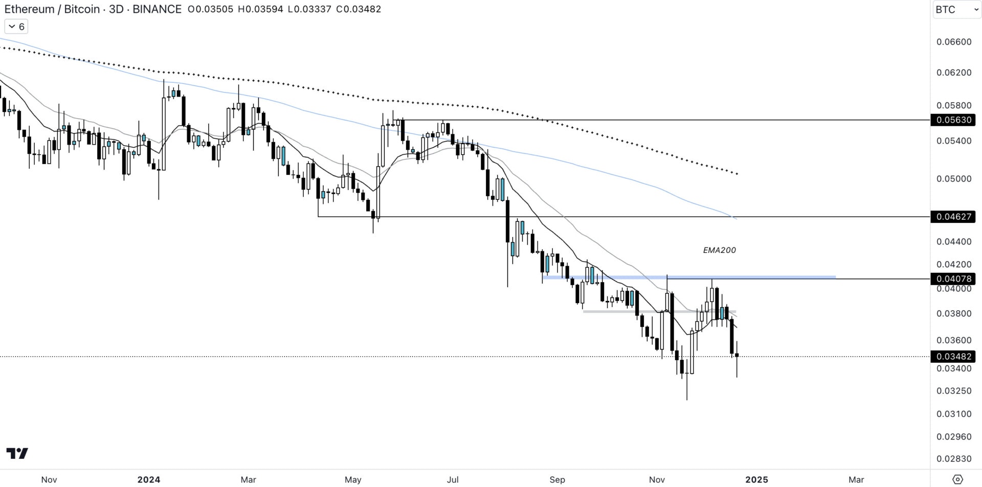 Une année 2024 qui restera globalement négative pour la paire ETH/BTC