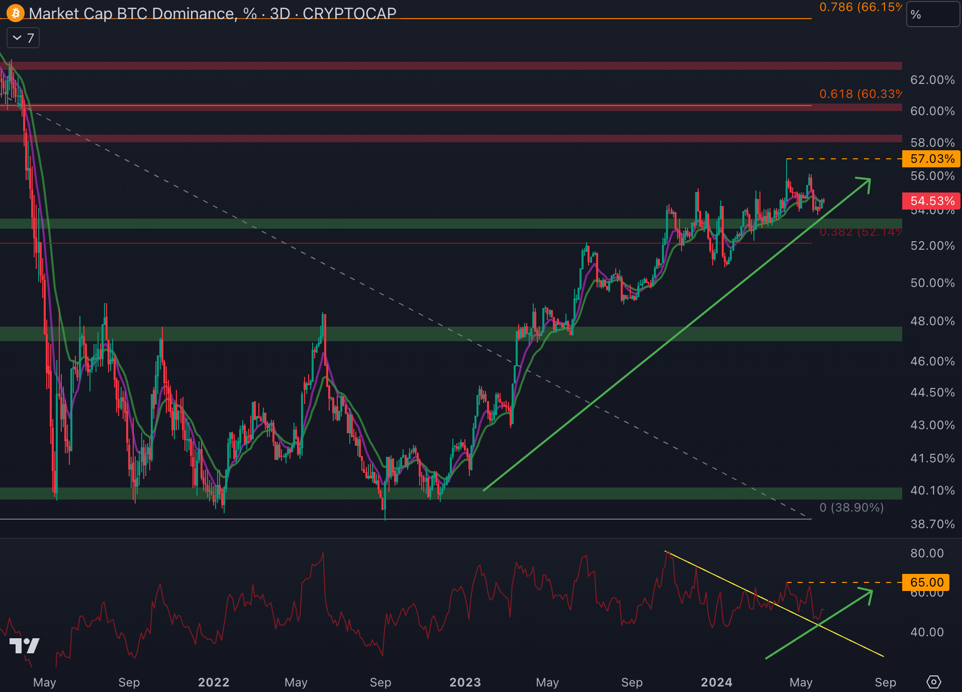 La dominance du Bitcoin va-t-elle retrouver la résistance à 58 % ?